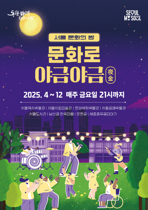 - '문화로 야금야금'은 매주 금요일 밤 서울시립 문화시설 8곳에서 진행되는 야간 개방 프로그램이에요.