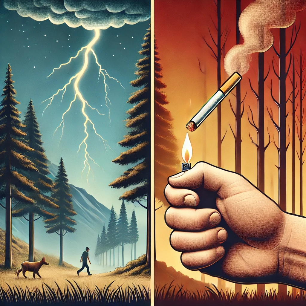 산불의 대표적인 자연적 원인은 낙뢰입니다. 특히 미국과 호주의 산악지대에서는 강한 낙뢰가 건조한 풀과 나무에 불을 붙이며 대형 산불로 이어지곤 하죠. 여기에 오랫동안 비가 오지 않아 습도가 낮고, 강풍이 부는 날씨까지 겹치면 불은 걷잡을 수 없이 번지게 됩니다.