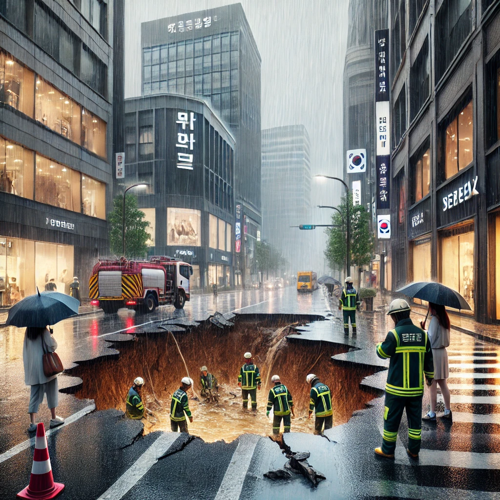 예: 2023년 여름, 한 달 새 세 차례 집중호우가 내린 뒤 서울 중심가에서 2건의 싱크홀이 발생