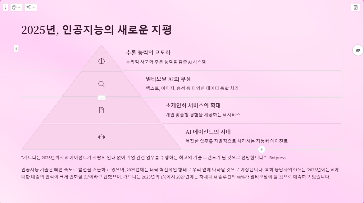 "가트너는 2025년까지 AI 에이전트가 사람의 안내 없이 기업 관련 업무를 수행하는 최고의 기술 트렌드가 될 것으로 전망합니다." Botpress