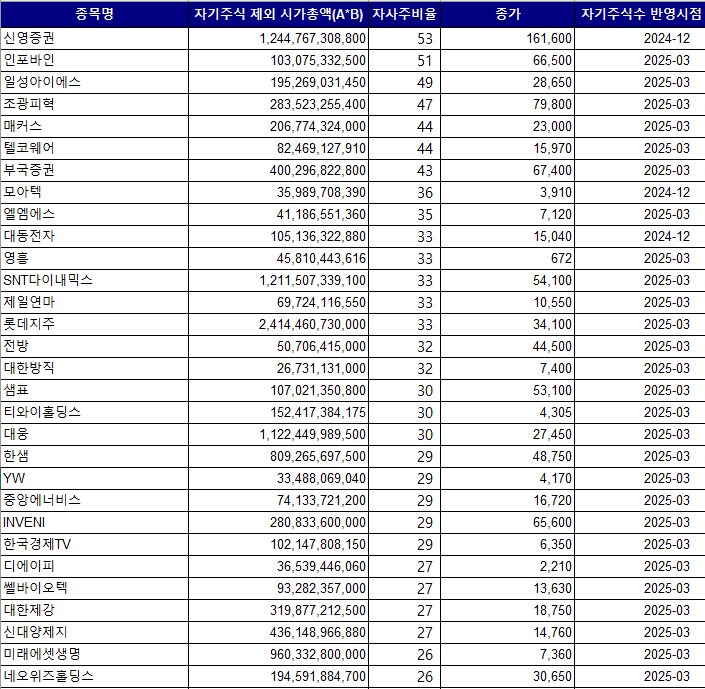 3. 주목할 기업: 현재 자사주를 많이 보유하고 있는, 특히 재무구조가 탄탄한 중소/중견 기업들을 눈여겨보세요.