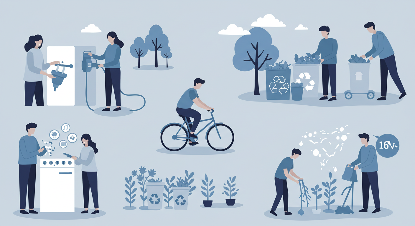 A: 가장 쉽고 효과적인 방법은 에너지 절약이에요. 안 쓰는 전등 끄기, 플러그 뽑기, 냉난방 온도 적정하게 유지하기 등 생활 속 작은 습관 변화만으로도 큰 영향을 줄 수 있습니다. 대중교통 이용과 올바른 분리수거도 아주 중요하구요!