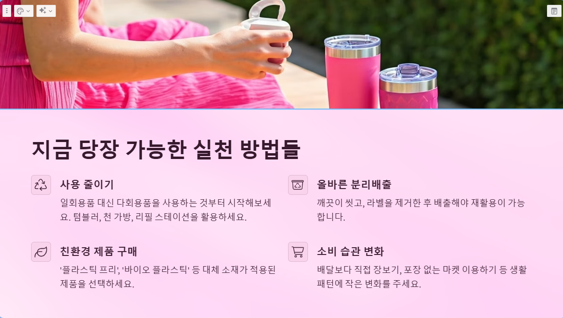 이 글이 여러분에게 작은 영감을 주었길 바랍니다. 함께라면 바꿀 수 있습니다. 지금, 이 순간부터 텀블러 하나 들고 나서는 걸음이 지구를 살리는 시작이 되니까요. 오늘부터 플라스틱과 조금 멀어져볼까요? 🌍