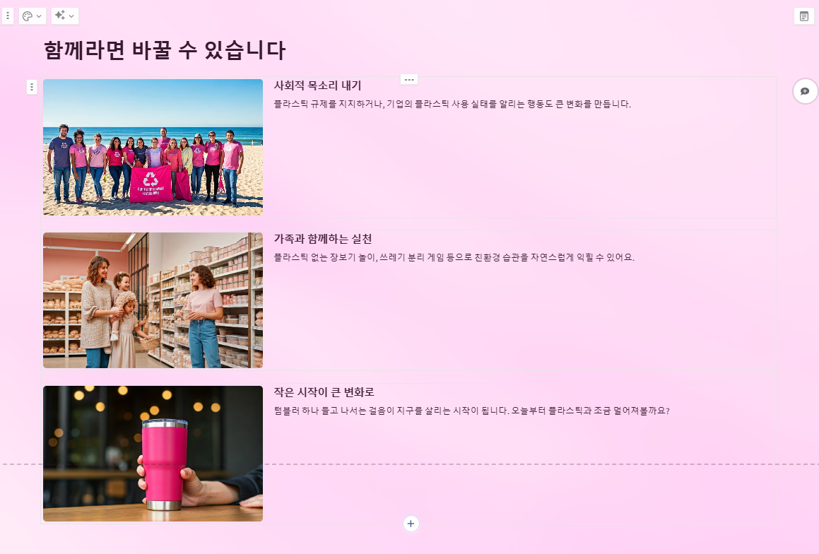 플라스틱 규제를 지지하거나, 기업의 플라스틱 사용 실태를 알리는 행동도 큰 변화를 만듭니다. 우리가 목소리를 내면 사회는 반응합니다. 📣