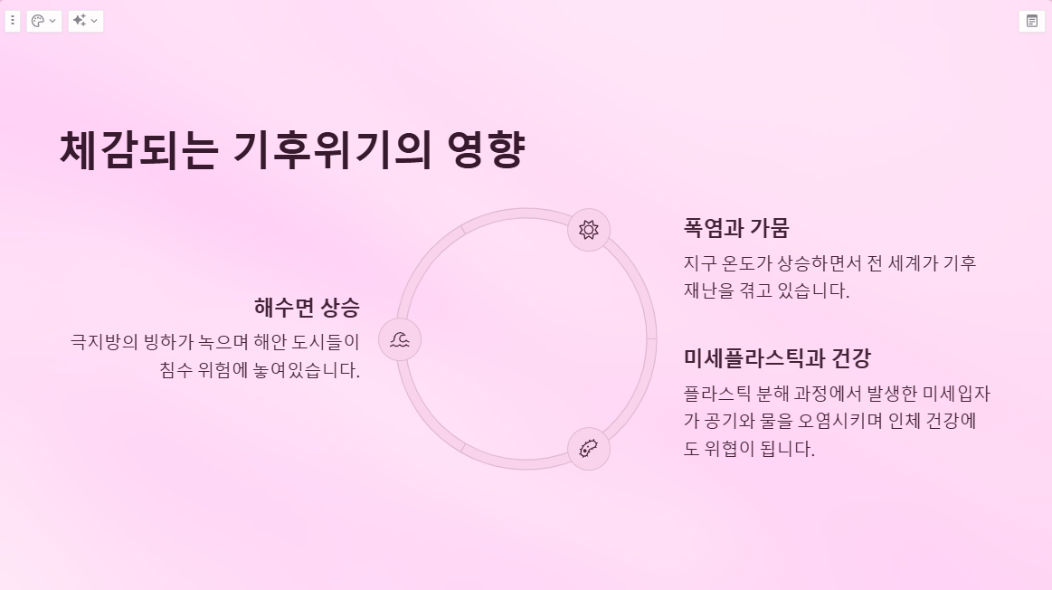 - 🌊 해수면 상승: 극지방의 빙하가 녹으며 해안 도시들이 침수 위험에 놓여있습니다.
